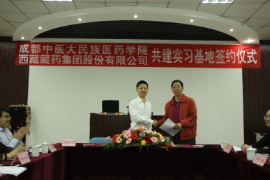 2016年5月26日,公司与成都中医药大学民族医药学院共建实习基地签约仪式暨实习生交流座谈会在成都分装厂成功举行。会上公司总经理章明(代表西藏藏药集团)与成都中医药大学民族医药学院院长张艺(代表中医药大学民族医药学院)签订了合作协议,并为“2016年度西藏藏药集团优秀实习生”颁奖。